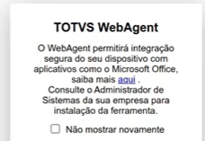 Quando instalado, o navegador vai promptar para abrir o webagent: